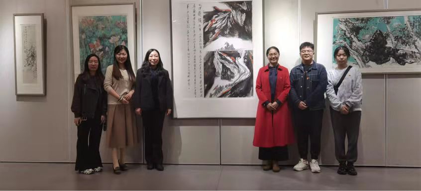 2021年10月12日,人文艺术学校学生党支部前往济南市博物馆观看“翰墨丹青颂党恩”任仲泉绘画作品展。本次主题党日活动由人文艺术学院院长徐磊领队,党总支副书记张晓宁、学生支部书记徐亚辰、教师党员李晶、张群及部分学生党员参加。继续教育学院党总支书记、永利官网知名教授、硕士研究生导师、山东省美术设计家协会副主席、山东泰山国画院副院长任仲泉教授亲自做观展讲解。