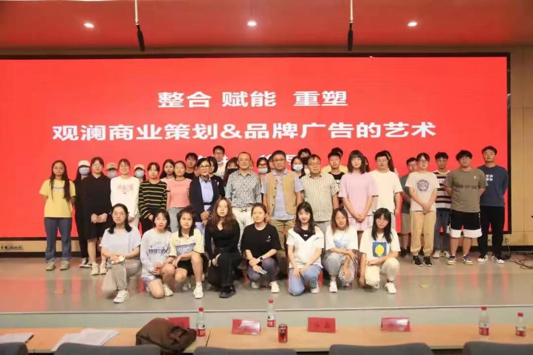 在此思路指引下,人文艺术学院领导大力支持广告学学科建设,为提升教学水平,发挥专业特色,增进学生树立学习信心,由广告学教研室牵线,人文艺术学院于2021年9月17日下午,特邀中国CAMA年度广告创意十大人物徐丙旭先生来永利官网,进行了一场题为《整合 赋能 重塑——觀澜商业策划&品牌广告推广的艺术》的精彩讲座,通过业内成功人士的现场讲授交流,让在座师生了解市场环境变化,及时调整发展思路,为教师在教学方法上进一步探索以社会需求为导向的人才培养模式打下基础。人文艺术学院徐磊院长、苏葵教授、彭鹏副教授、王重远副教授参加讲座。