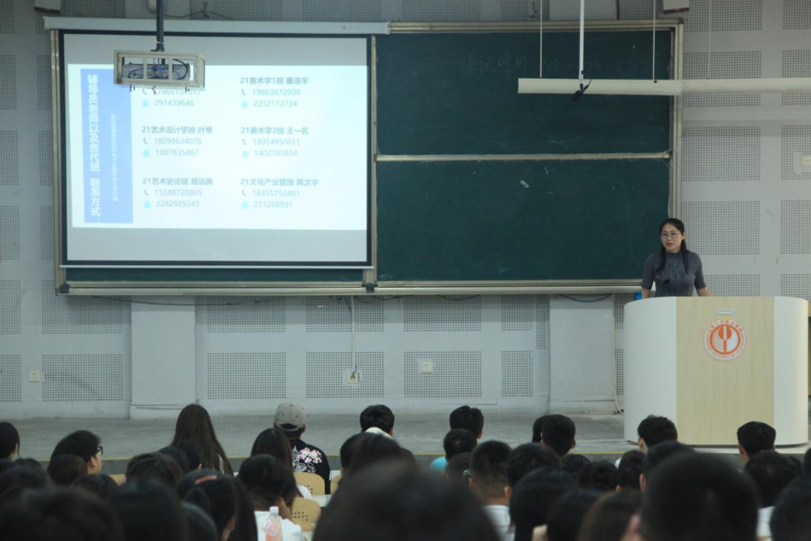 13日下午4点,人文艺术学院于综合楼十合堂召开了全体新生大会。本次会议由2021级新生辅导员李晶主持,2021级全体学生及其代班参加。李晶首先对2021级新生的到来表示热烈欢迎;随后,对学院发展历史和师资力量等进行了简要介绍;接着,对新生进行了疫情防控教育、适应教育和安全教育;最后,引领新生做好大学规划,以帮助他们更好地适应和融入校园生活。