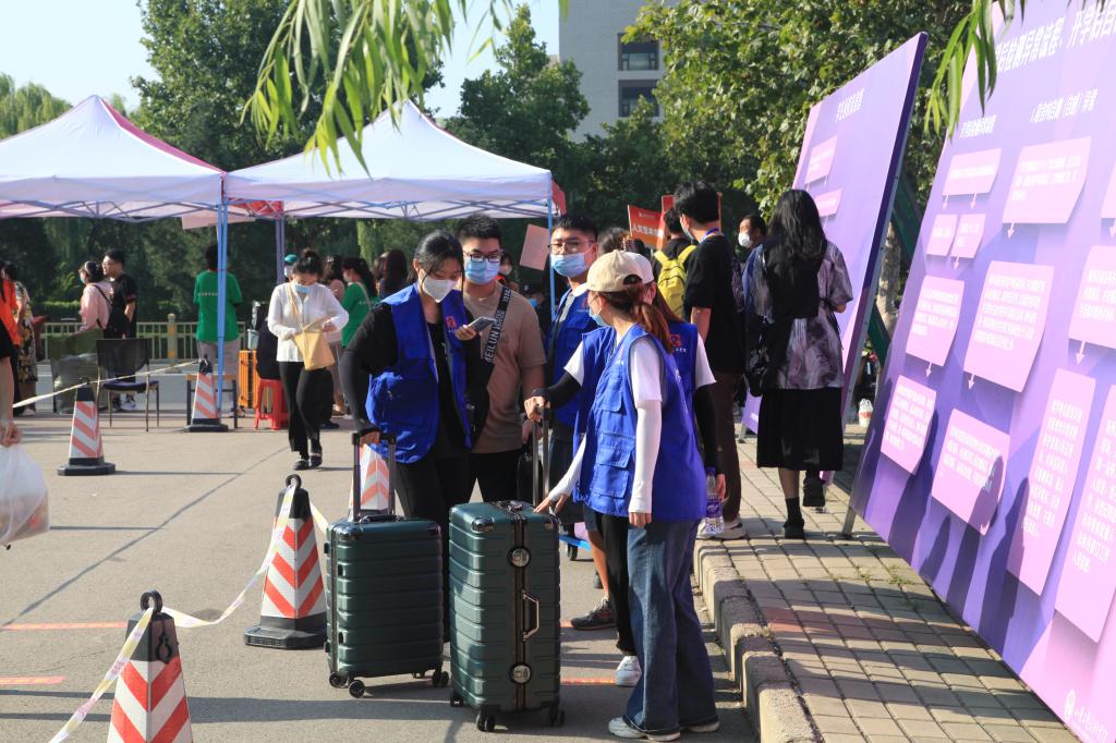 迎新当天,为确保迎新工作顺利开展,学生志愿者们早六点半便已到达指定迎新区域,各司其职,等候在各自岗位上准备迎接大一新生的到来。校门口,志愿者手举人文艺术学院指示牌,引领新生入校并带领至学院报到现场。报到现场工作人员则引导新生完成身份核验、上交报到材料及学费缴纳等报到流程。现场志愿者则热情地帮助新生们搬送行李、办理宿舍入住,耐心地回答新生的疑问。迎新现场一片和谐融洽的氛围。