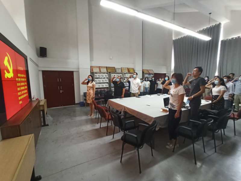 安峰书记带领全体党员回顾了中国共产党走过的光辉历程及取得的丰功伟绩。张晓宁副书记带领全体党员面向党旗重温入党誓词,提醒大家不忘初心,永远保持建党之初中国共产党人的奋斗精神,永保赤子之心。