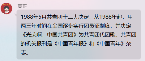 17级文化产业管理团支部组织于3月18日下午围绕“重温中国共青团知识”主题,首先由团支书郑璨搜集相关资料,将团课复习知识点分享给大家。紧接着到互动分享环节,每位团员都积极参与,将自己所知的中国共青团知识以图片、文字等形式分享给大家。最后团员青年纷纷在团支部QQ群内表示重温团知识后,深刻了一名共青团员的责任与担当!