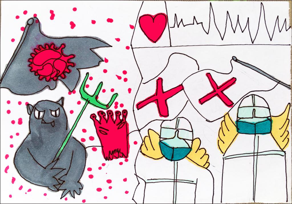 张缤月《戴口罩的小人2》 5岁 山东女子学院附属幼儿园