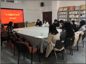11月27日下午,人文艺术学院学生党支部在多媒体教室召开支部大会,组织全体学生党员对党的十九届四中全会精神进行集中学习。
