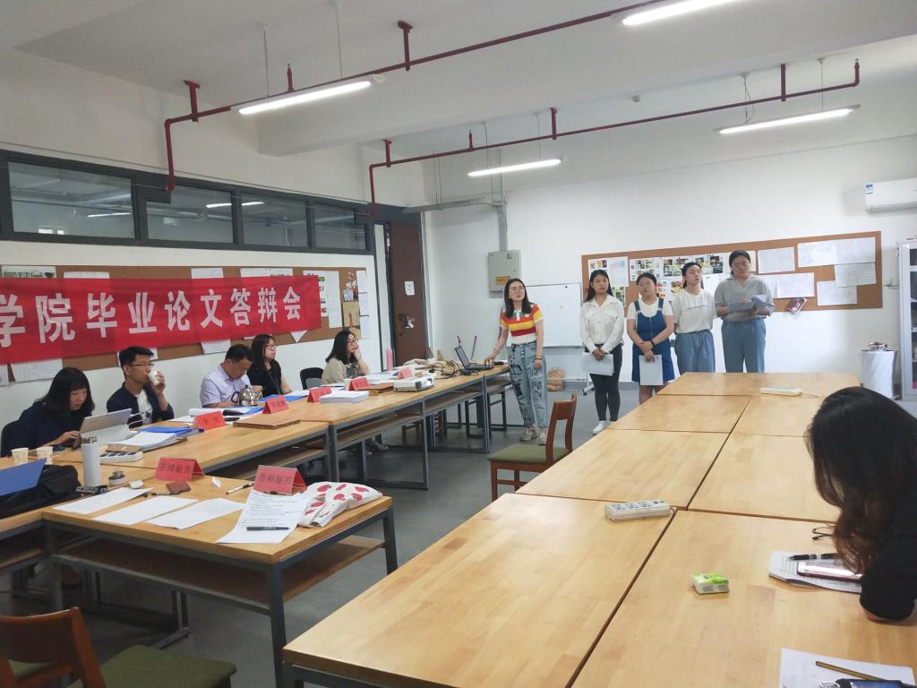 本场答辩会分为五个答辩组同时进行,答辩过程分为学生陈述、答辩委员提问、学生回答和答辩委员评述四个环节,答辩采取口头答辩的方式进行。答辩过程中,同学们就写作论文写作背景、课题的目的和意义、研究思路和方法、论文的主要观点、论据和结论等方面进行陈述。评委就选题思路、论文结构等方面进行了提问,对论文进行了详细的点评和指导,对部分学生的论文存在的问题提出了进一步修改的意见和建议,并依照论文完成质量、现场表现综合判定学生的毕业论文答辩成绩。