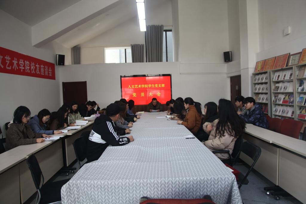 12月14日下午,人文艺术学院学生党支部在综合办公楼多媒体教室召开预备党员接收大会。本次会议由学院学生党支部书记杨端举主持,党总支副书记张晓宁、辅导员宋嵋、全体学生党员和拟接收对象参加了此次会议。
