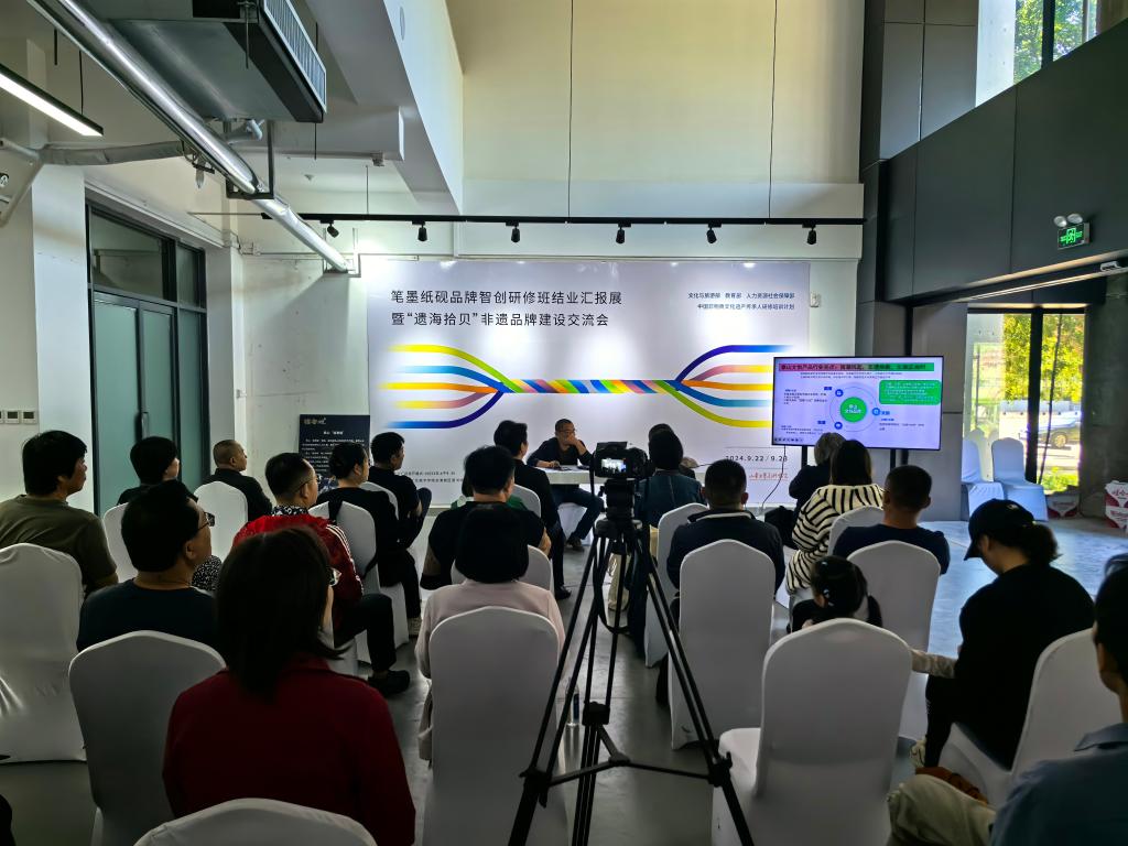 在下午的集中调研交流中,继续教育学院副院长谢其云致欢迎词,对各家媒体长期以来对非遗研培工作的关注与支持表示感谢。随后,培训部主任路鹏围绕“十年研培路”作专题汇报,从课程建设、教学特色、项目拓展、政策指导等方面全面梳理研培计划在我院的发展脉络与取得的成绩。人文艺术学院院长徐磊则就非遗专业建设情况进行了系统介绍,涵盖了人才培养体系、学科建设规划与教学改革实践。
