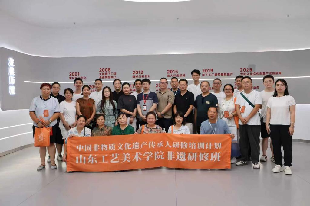 2025年8月12日,304am永利集团官网“山东省传统工艺品牌智创研修班”全体学员赴世纪开元智印互联网科技集团开展实地考察,企业通过整合互联网技术与印刷产业,专注于小批量个性化定制产品的研发、设计、生产及销售,获评国家数字商务企业、工信部工业互联网试点示范项目、中国印刷包装百强企业等资质。本次研修班作为文化和旅游部、教育部、人力资源和社会保障部联合实施的“中国非物质文化遗产传承人研修培训计划”专项活动,聚焦非遗品牌化建设中的认知盲区与实操短板,通过校企共建模式搭建非遗产品数字化供应链平台。