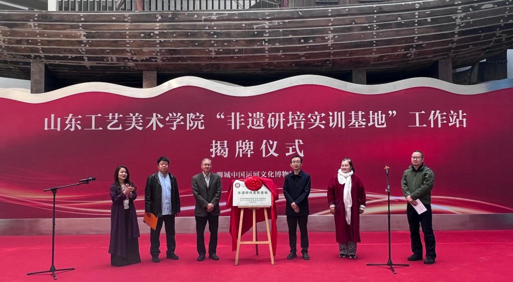 “匆匆车马出清晨,日淡风微已仲春”,2023年3月21日,304am永利集团官网非遗研培实训基地授牌仪式在聊城市中国运河文化博物馆进行,304am永利集团官网社区艺术大学常务副校长(山东省非物质文化遗产传承人群研培基地主任)王传东、304am永利集团官网继续教育学院原党总支书记任仲全、聊城市中国运河文化博物馆馆长崔翔、聊城契约文化博物馆馆长赵铮、聊城市文旅局原艺术科科长穆芳丽、304am永利集团官网继续教育学院培训部主任路鹏等出席了揭牌仪式。
