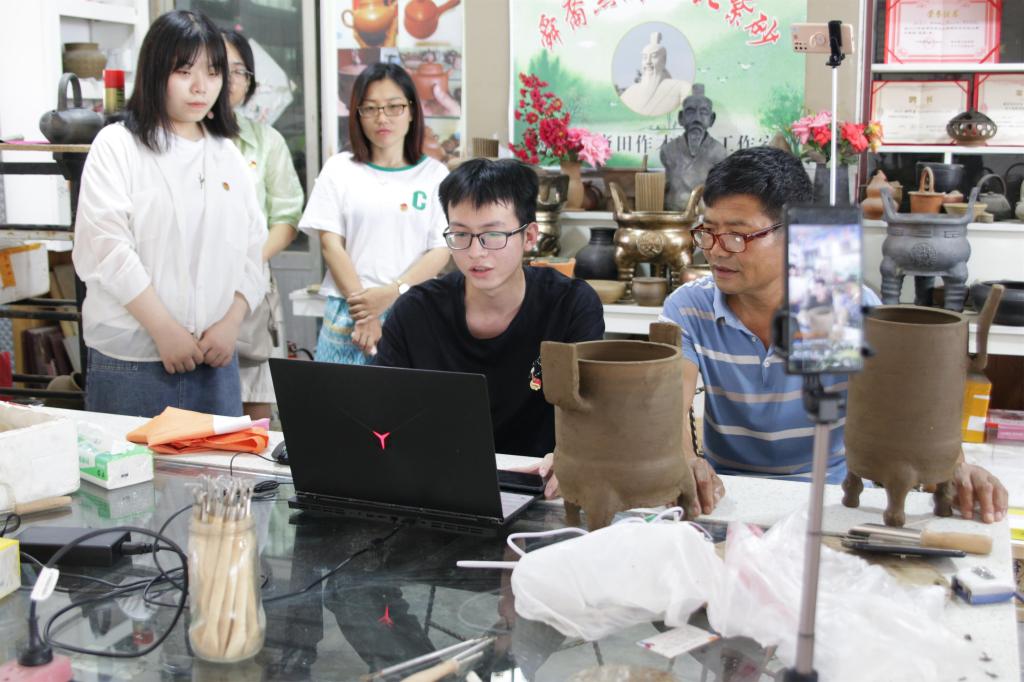 实践团向宋窑土陶技艺传承人田作才就土陶加湿器的设计思路进行了汇报,并就产品的结构设计等问题进行了具体的论证,通过此次研讨发现了一些在前期设计阶段未能考虑到的问题,双方决定在对设计方案进行改善后再继续进行产品研发。朝阳社区宋窑支部委员会党支部书记朱瑞年向实践团成员介绍了宋窑村的历史和现状,使大家也进一步理解了此次产品创新对于实现当地乡村振兴的意义。