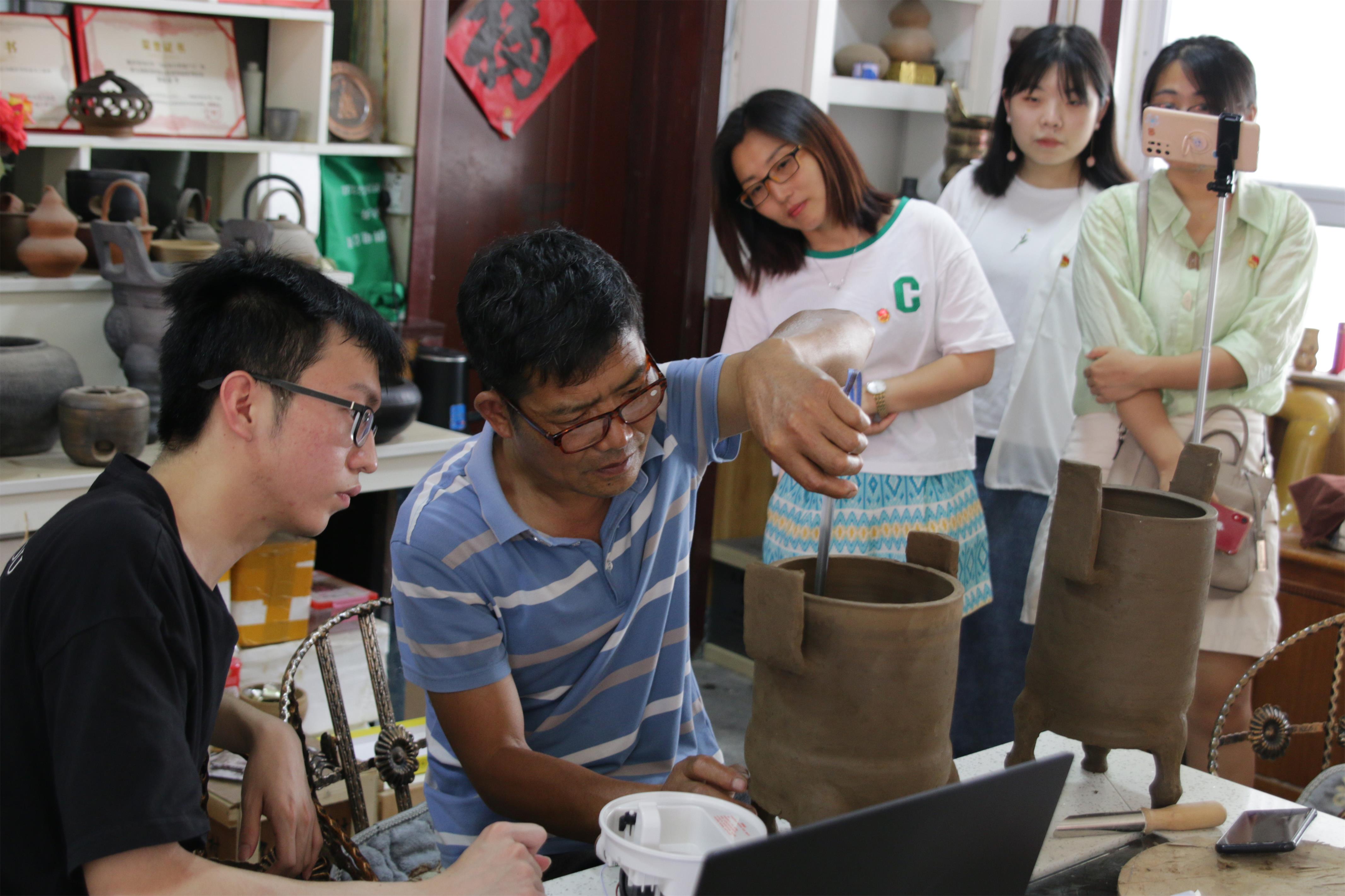 304am永利集团官网“三下乡”社会实践团本次活动主要包含以下两项内容:1、对山东省非遗项目土陶产业情况进行现场调研,总结各地土陶产业的经验和教训,提出有针对性的发展策略与方法,助力山东省非遗项目的活态传承与发展。2、根据产学融合的思路,利用学院教学资源帮助郯城县宋窑村进行土陶产品创新,以实际举措助力乡村振兴,同时也帮助学生实现设计到产品的现实转化。