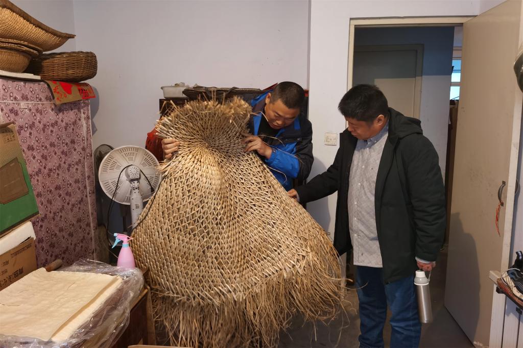 孙佃宝是草柳编技艺的传承人,其所在的半程镇辛庄子村曾经许多人家从事草编手艺工作,但昔日的产品在当下已经失去了使用场景,曾经盛极一时的蓑衣村里现在仅仅只有几家在空闲时制作,其所编制的蓑衣需要用到当地产的琅琊草,主要被人们作为民俗工艺品用于展示或收藏。