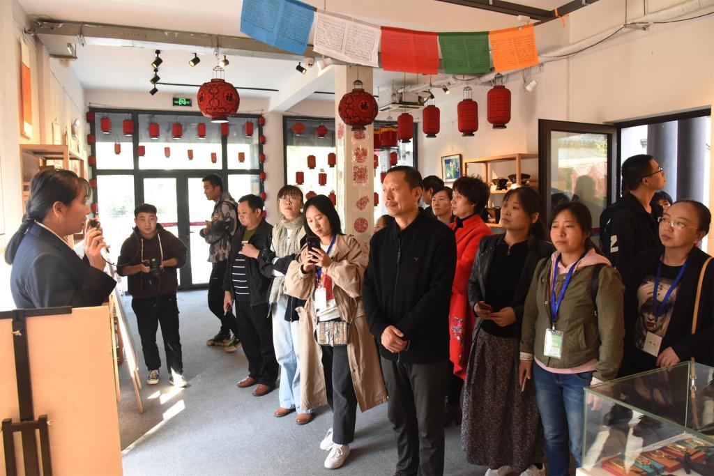 全体学员在工作站顾问、工艺美术大师张冰老师的带领下进入百花洲传统工艺工作站,参观了非遗展示体验区块,对非遗的前世今生有了更为深入的了解。学员们在讲解员的带领下,陆续参观了泥塑、面塑、陶瓷、琉璃、木版年画、葫芦、翻花、剪纸等非遗传统技艺。进入工作站,学员们被各种精致的作品和衍生品吸引,纷纷驻足观赏,交流研究。大家还不时的对工作站内的传承人进行提问,对各种工艺都有着强烈的求知欲。大家边看边研究探讨,纷纷表示此次调研收货颇多,对很多传统工艺技法有了更为深入的了解,对未来创作启发很大。