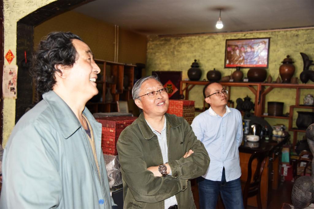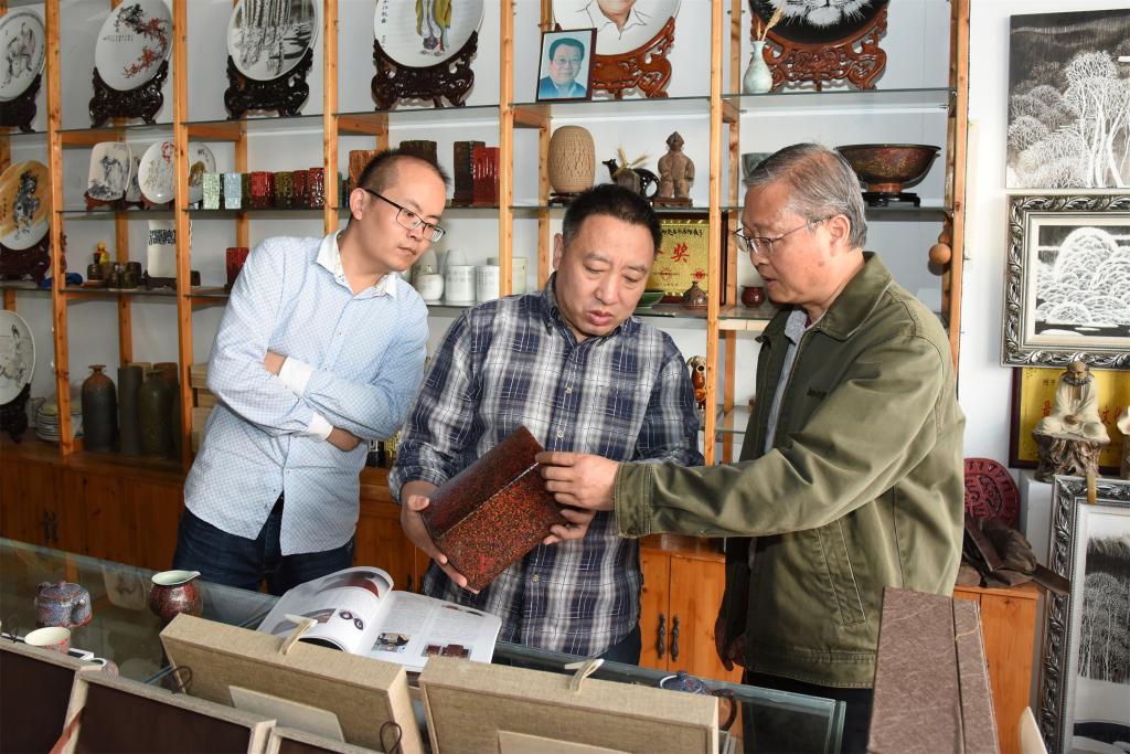 4月19日,继续教育学院院长王传东、教师尹怡朋等一行三人来到德州董子文化街,对陶瓷烧制技艺、核木雕技艺培训班学员进行回访。