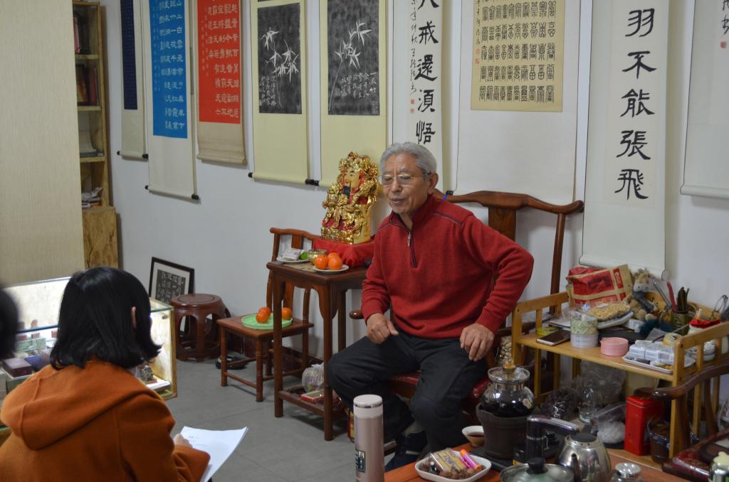 3月10日,上午十点来到潍坊十笏园文化街区,我院非遗培训核木雕班学员在此开设有展厅和工作室。首先来到潍坊核雕国家级非物质文化遗产代表性传承人王緒德老师的展厅,王老师也是我院非遗基地特聘技艺导师。此次回访,王老师首先感谢学院聘请其为非遗技艺导师,能够很好的把核雕技艺传播出去,并带领大家参观了展厅中他的作品。王老师坚持传统的创作手法,并于传统的基础上进行创新,特别是传统题材的创新。从传统的马车、船到花瓶以及红木镶嵌工艺的鼻烟壶,再到装饰性的手表、戒指和耳环,无不体现老艺人在传承传统的匠心精神的同时,结合人们的审美喜好所做的开拓创新。王老师提出,2018年,他对自己从事的技艺也有了新的想法,一是希望政府支持能建立潍坊核雕博物馆,二是希望能与高校合作,对传统技艺进行记录整理,出版教材或者书籍,通过文字的方式将古老的技艺保存下来。这两个新的想法也是希望能扩大核雕的影响力,使更多的人了解并喜爱这项技艺,最好能走向世界。