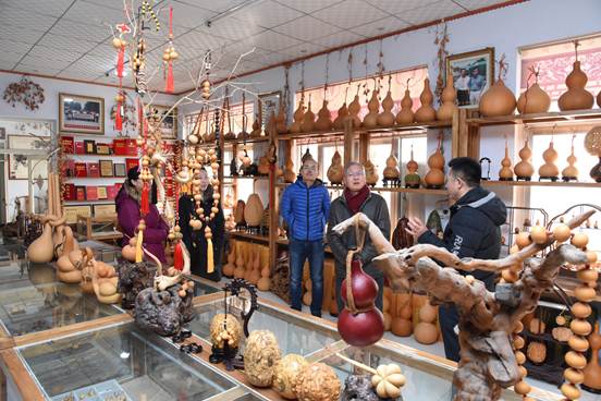 2月11日上午,回访了济南章丘的马友谊,马友谊是核木雕培训班的优秀学员,从小耳濡目染跟随父辈学习葫芦雕刻,在传承了上一代的技法后,随着时代的变化不断的注入了新时代的特征。回访中马友谊带我们参观了友谊匏园、葫芦博物馆和工作室,介绍了培训后的新作品。同时针对培训班的培训过程谈了自己的一些意见和建议,并十分肯定了培训的效果,表示在培训班里收获很大,特别是在培训期间,王院长的课对他在今后发展方向的建议给了他很大的启发和鼓励,培训一结束,就开始着手策划,加强与政府间的沟通与合作,借助地域优势和自身优势,创建参观、体验、培训、销售一体的葫芦技艺传习所。马友谊表示在今后的发展计划中要更加关注与院校的合作,对学院的实践教学基地、工作站的建设表示了大力支持,愿意并期待与学院的进一步合作。