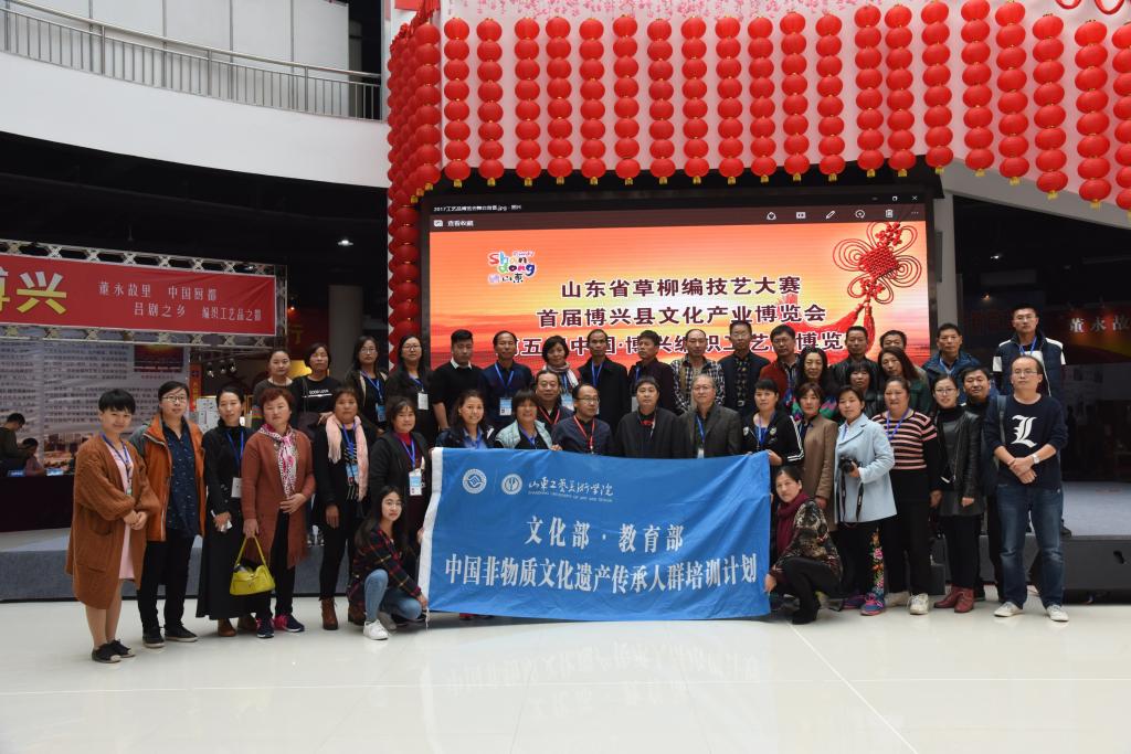 10月27日,山东省职业技能草柳编技艺大赛、首届博兴县文化产业博览会暨第五届中国博兴编织工艺品博览会在博兴县草柳编文化创意产业园举行,304am永利集团官网草柳编培训班的学员们在继续教育学院院长王传东等老师的带领下一起参观了此次博览会。