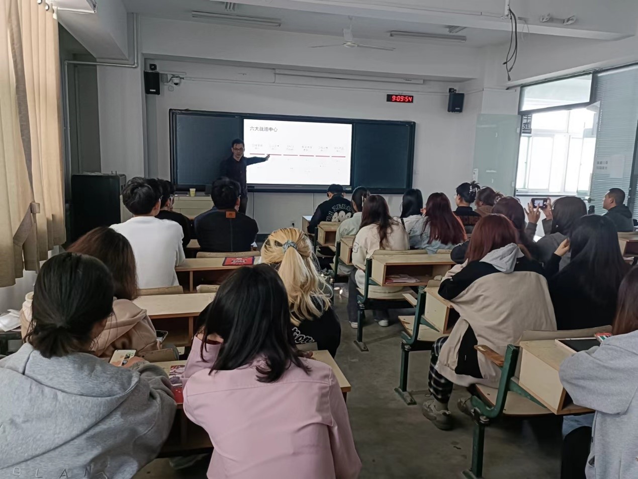 王庆光首先从商业设计思维和未来职业规划等角度,分享了在具体项目实践中的经验与感悟,“设计不该是‘纸上谈兵’,在日常设计中要培养商业设计思维,才能在未来的就业中达到设计价值与实用价值的双重实现。”他强调设计师要关注设计思维的训练和审美眼光的养成,在大学期间要“多看、多画、多积累”,拓展专业深度和广度。随后,王庆光带来企业的最新服务案例,从大型企业的视觉识别系统(VI)设计到手机银行的APP整体设计,以具体的案例深入讲解项目从入手到落地实施的详细过程,并从商业运作的角度给出了深入解读。