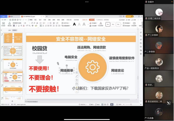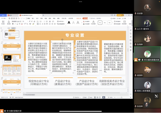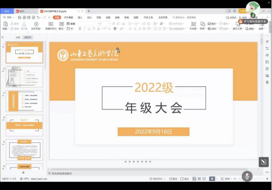 为帮助22级新生更快的适应大学生活,9月18日晚8点,应用设计学院召开2022级线上年级大会,会议由李文娜老师主持,党总支副书记朱冉冉、2022级全体新生及代理班主任参加会议。