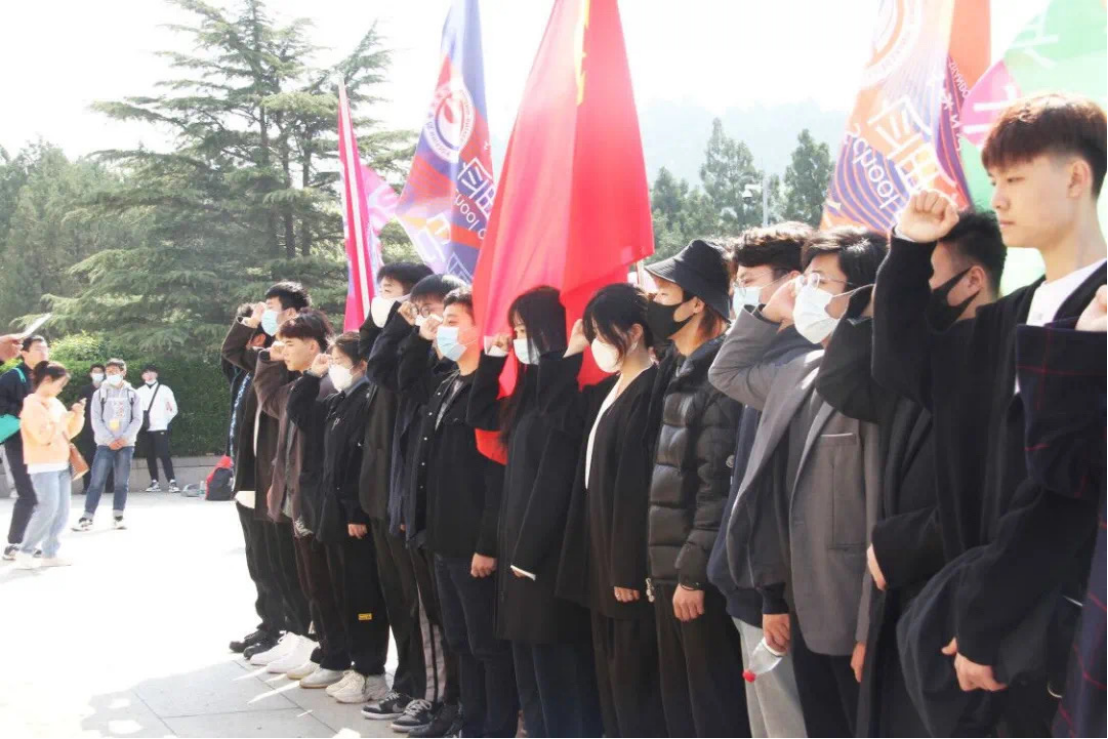 由学生代表带领全体成员在革命烈士纪念碑前庄重宣誓:学习和弘扬革命先辈的爱国主义精神,做民族精神不折不扣的践行者。自强不息,团结友爱。从现在做起,从身边做起,从小事做起,为祖国,为人民,做出自己的贡献。将红色基因根治于血脉,将青春之我溶于时代之责。