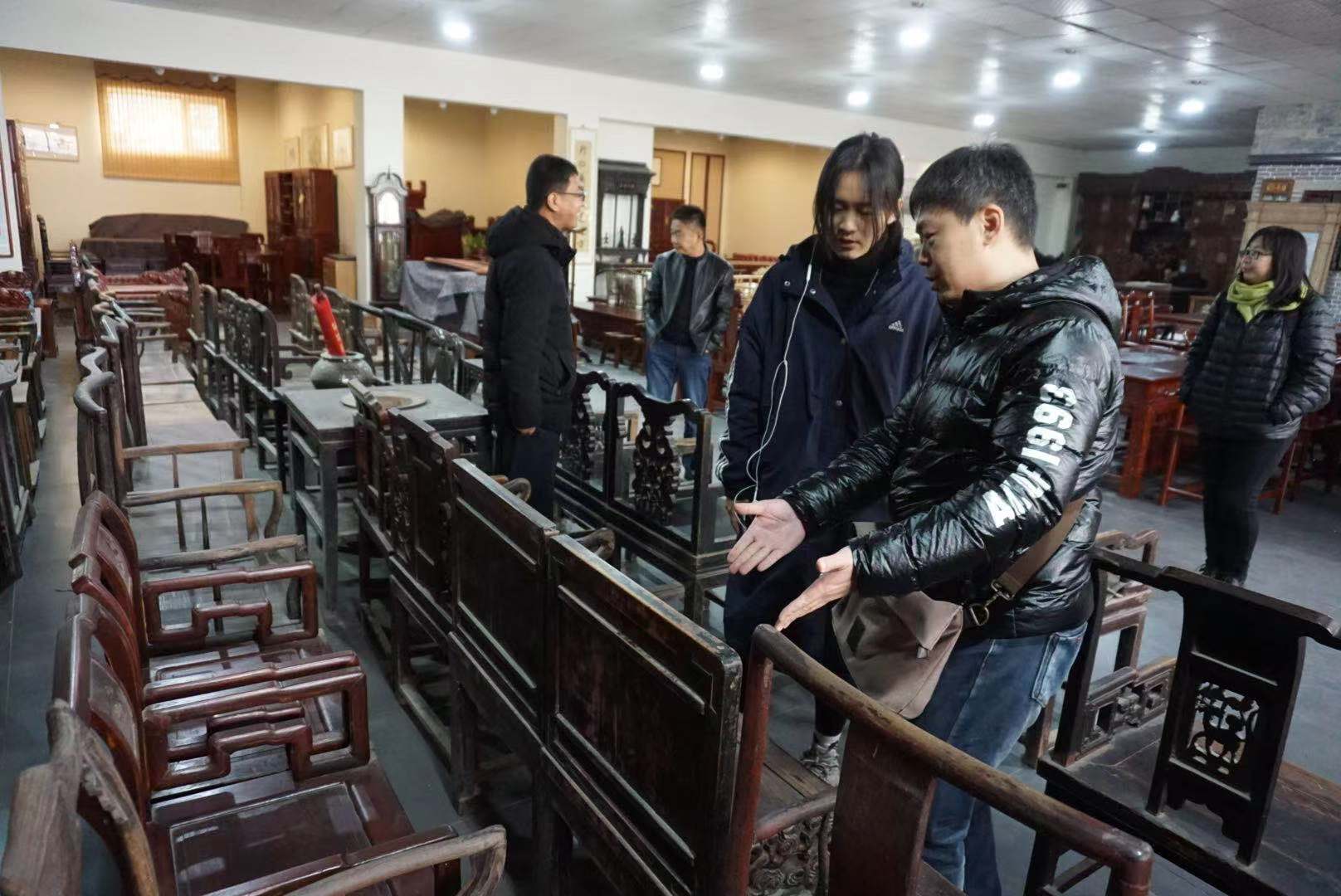 2020年11月23日,按照家具设计专业人才培养方案实施的要求,应用设计学院家具设计专业组织师生赴临清市松林镇进行实训教学。本次实训课程由家具教研室黄永健老师和陈静老师主持,授课班级包括应用设计学院2018级家具本科班46人、专科班11人,及研究生3人。实训过程在我院实习基地——聊城临清市松林镇古典家具产业园区进行。近年来,松林镇组织从事实木家具制造和销售的百家企业形成家具产业集群,从业人员达2万余人,被山东省家具协会授予“山东省老榆木家具产业基地”称号。此次实训课程的目的是考察传统家具样式和结构,包括测量绘图、结构分析、工艺调研、市场调研等,并安排学生采访家具产销企业和方案汇报。