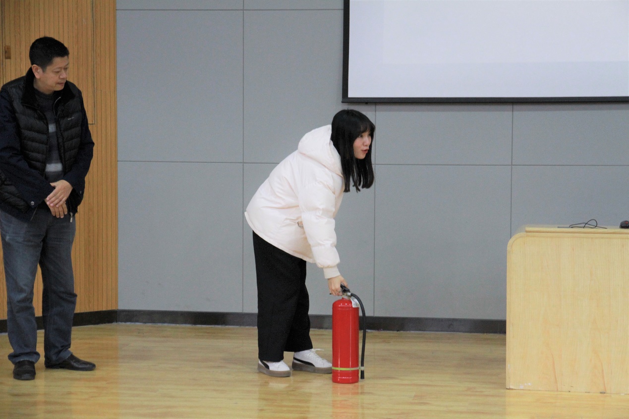 在此次讲座中,分为四个流程来开展。第一项,邀请在做的同学上台演示正确使用灭火器的方法及注意事项,并加以讲解和示范, 以便在火灾来临时,学生能及时正确使用灭火器熄灭火源,第二项,主要通过现实的火灾事例,和相应的火灾起因,来强调正确用电的重要性,为给学生营造安全的平安校园,特别说明在生活中,处处要小心用电,安全用电。第三项,以大兴安玲为例,讲解火灾造成的危害性,要时刻警惕,火灾随时可能发生,但是要避免发生的可能性。在最后一项中,注重说明如何在火灾来临时,正确的逃生,把灾害降到最小化。为营造安全校园,学生一定要有正确的消防知识。