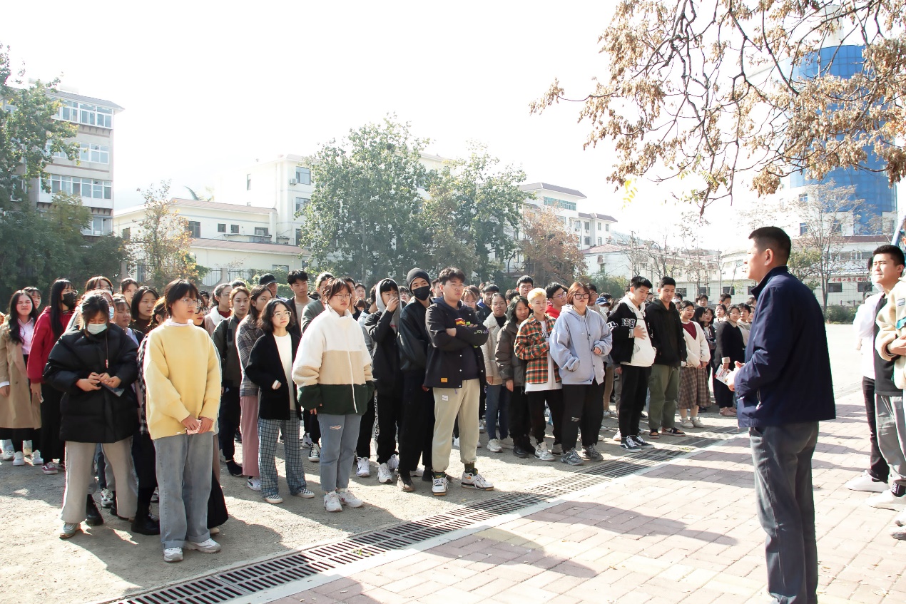 11月10日,应用设计学院举行大学生消防演练,旨在增强同学们的应急逃生技能和面对突发火灾状况处理能力。保卫处田晓东老师现场指导,学生处郝巧云老师、辅导员李江峰老师、康映雪老师、王鲁浩老师及2020级全体学生参加了演练。