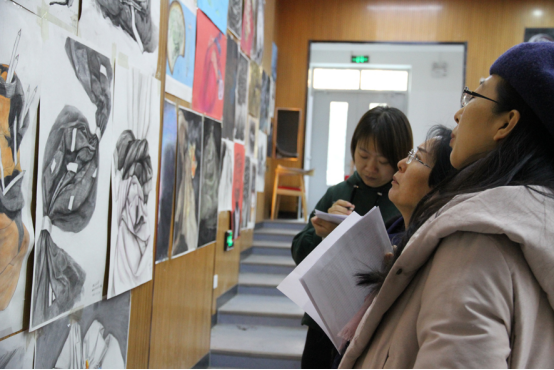 2019年12月12日,应用设计学院就造型基础课程进行集体打分和结课作业展览。应用设计学院基础教学改革进入第三个年头,在造型基础、二维形态基础、综合材料基础三个课程中体现了较大的改革力度。造型基础是学生叩开大学校门后的第一门课程,它的地位非常重要,经过任课教师的集体备课和审议,认为应将我国促进学习者全面发展的教育目的切实贯彻于课程实施中,因此确立了融心灵之启迪、情操之蕴化、灵魂之培塑、学生综合素养与专业能力协同发展的课程目标,造型基础课程第一阶段课程内容融入传统文化教育,使学生在写生的过程中领略传统造物造型之美,学习我国设计艺术发展的悠久历史,培养其热爱珍惜传统文化的情怀;第二阶段到自然界中感受真实而丰富的色彩,培养其色彩认知与表现能力;第三阶段以创意素描的形式培养学生的创意思维与表现能力。基础课程改革所经历的各个课程阶段都坚持教学团队集体备课、集体点评、集体打分的方式。