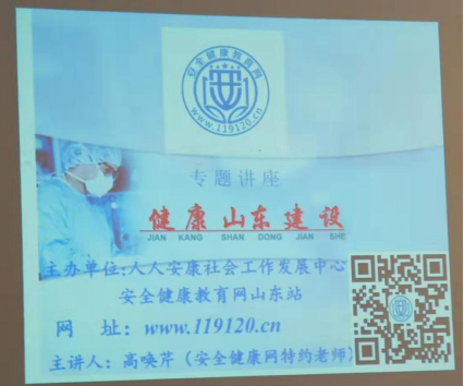习近平总书记强调,没有全民健康,就没有全面小康,要把人民健康放在优先发展的战略地位。为贯彻习近平总书记指示,推进平安和谐校园建设,营造良好育人环境,结合永利官网“不忘初心、牢记使命”主题教育,2019年11月27日下午,应用设计学院特邀中国安全健康教育中心山东站高唤芹老师,给部分老师、学生会干部及学生党员,进行了一次“健康山东建设”讲座,为师生守护生命、守护校园平安上了生动一课。