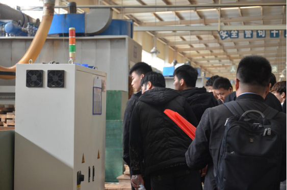 上午10点,参观家具生产车间,技术人员及工人师傅答疑解惑、现场操作,使学生更加直观地了解家具工艺、家具设备、生产工序,为以后的学习、工作打下良好的基础。