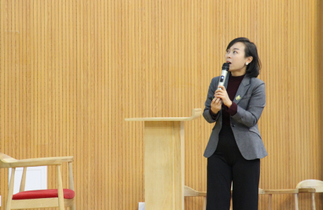 首先,倪泥老师讲述了自己创业的经历,告诫同学们只有直面困难,才能不断地突破自我。倪泥老师指出,让一个人认识自己,必须要有让人留住印象的自我介绍,包括四种:资格感自我介绍,“我赶过猪”,人生说明书,“五根手指头”,示例生动形象。