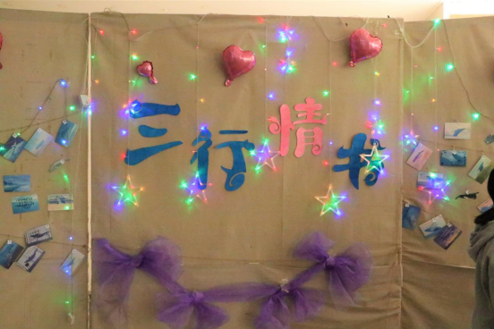 “三行情书”大赛,顺应此形式用短短的三行字,短短三行,是信,也是诗,简练的语言中感受丝丝情意,本次活动使我们懂得最真挚的情感不需要过多华丽的语言来描述,简单的一句话也可以融化一个人的心,也让同学们的情感世界更加充实。
