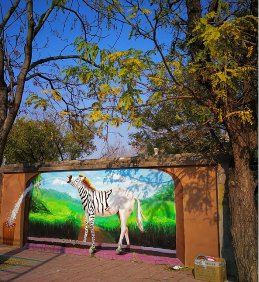 11月29日,同学们经过1个月的认真绘制,共创作墙绘16幅,面积达153平方米。“社会主义核心价值观”主题5幅,分别是《爱国》《敬业》《富强》《公正》《自由》;“当代大学生生活”主题11幅,分别是《动物园》系列3幅,《万里长城》、《万里奔腾》、《万水千山》、《汽车总动员》、《大丰收》、《清爽时刻》、《破笼而出》、《大灌篮》等。
