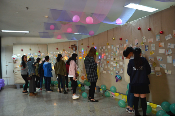 为了丰富永利官网大学生的业余生活,给永利官网大学生提供一个表达自我情感展现自我的平台,4月10日,应用设计学院在教学楼一楼展厅,举办了“三行‘情’书”活动。旨在促进学院间学生的交流,让学生们相互了解、相互帮助,并且通过文字表达心中对亲情的重视、对友情的珍惜。