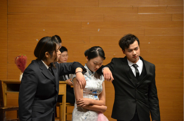 首先由16级杨天翼同学带来一首优美高昂的歌曲,随后由MASK话剧社的成员带来了第一个小型话剧《网购奇遇》,台上同学表演幽默有趣,时不时引得台下观众哈哈大笑。在与下一个节目的衔接之间,由相声小品社的成员进行串场表演,最后,本晚最期待的话剧《红玫瑰与白玫瑰》终于在同学们的热烈掌声中千呼万唤始出来了。同学们的话剧表演流畅自然,以特别的形式将人物的表面与内心的情绪感情表现得淋漓尽致,台下的观众忍不住为他们鼓掌欢呼。节目在话剧社社长徐翠和张学德的歌声中结束,整个会场掌声阵阵,欢呼不断。