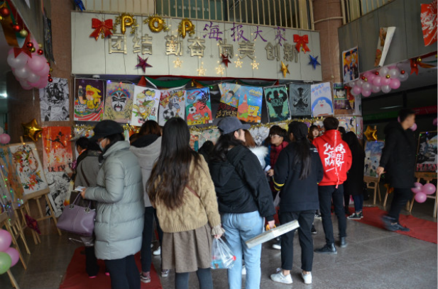 为丰富同学们的课后文化生活,提升专业素养,强化个人或团队的动手能力,11月28日,应用设计学院在教学楼一楼大厅举办了pop海报设计大赛,此次大赛由学生会宣传部负责,学院老师和同学们都来到现场参观并参与了此次大赛的评选。每个班自定主题,要积极向上,展现青春活力,大家自由发挥,创作出了一张张精彩的海报。此次大赛由应用设计学院学生会宣传部主办,17级全体学生参与创作发挥。