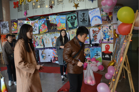 宣传部成员提前一天晚上开始布置会场,用鲜艳可爱的装饰物品将整个大厅装扮隆重而不失活泼,将同学们的海报一张张的挂到绳子上或是从二楼吊下来,整齐的展示到同学们的面前。同学们积极参与到其中,为自己喜爱的海报投下珍贵的一票。同学们用自己的画笔来描绘符合主题的海报,展现自己青春活力、朝气勃勃的一面。最后,历时一天的海报大赛圆满结束。经过大家认真积极的投票,分别评出了优秀海报6名。