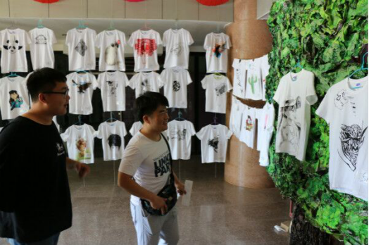 怀着紧张激动的心情,T恤大赛正式开始,参赛选手手绘的T恤内容丰富,图案各异。有的悬挂在大厅上空,有的粘贴于画板上,营造出一种唯美的意境。参赛选手的作品上,有的是俏皮可爱的卡通图画,有的是时尚动感的简洁图标,有的是随心而舞跳跃音符,有的是春意盎然的鸟语花香。本次体恤大赛吸引了很多同学前来参观,投票选举出心中喜欢的作品。大赛最终将选出一、二、三等奖和优秀奖,结果将于近日公布于宣传栏。