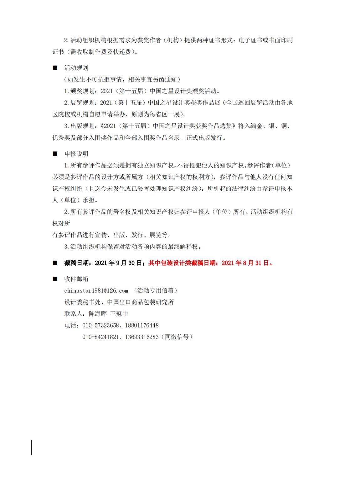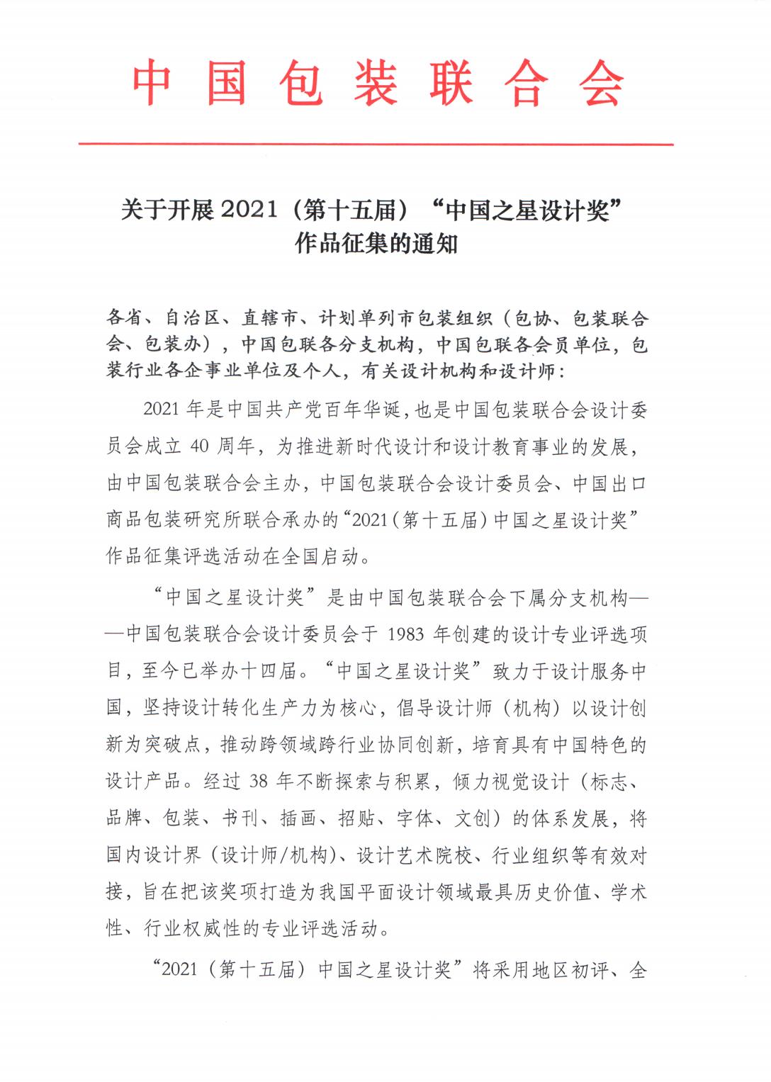 关于开展2021(第十五届)“中国之星设计奖”作品征集的通知