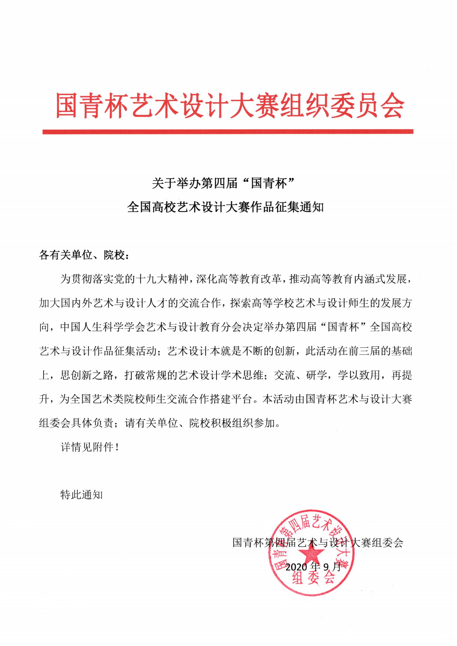 关于举办第四届“国青杯”全国高校艺术设计大赛作品征集的通知