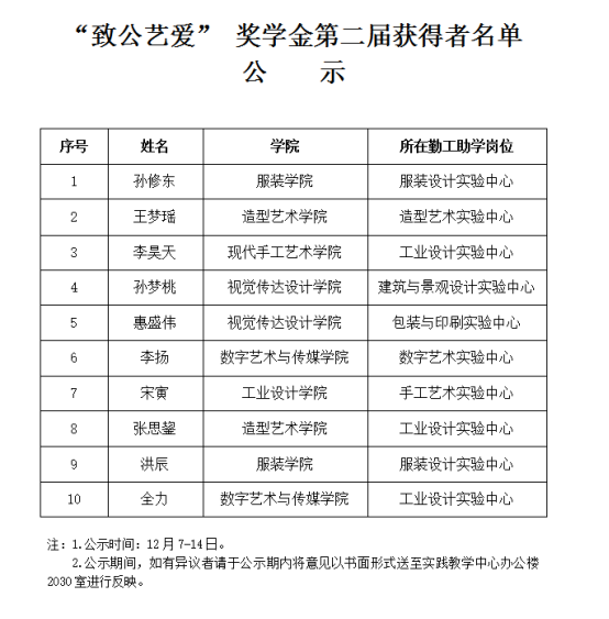 12月7日,“致公艺爱”奖学金第二届评审工作在艺术与设计实践教学中心党员活动室进行,山东荣寰律师事务所主任荣世海律师,艺术与设计实践教学中心主任、教务处副处长张伟教授,办公室主任刘婧婧出席评审工作会议,评审小组组长李悝,成员徐婷,刘鸣,王海涛,王荔娇参加评审。