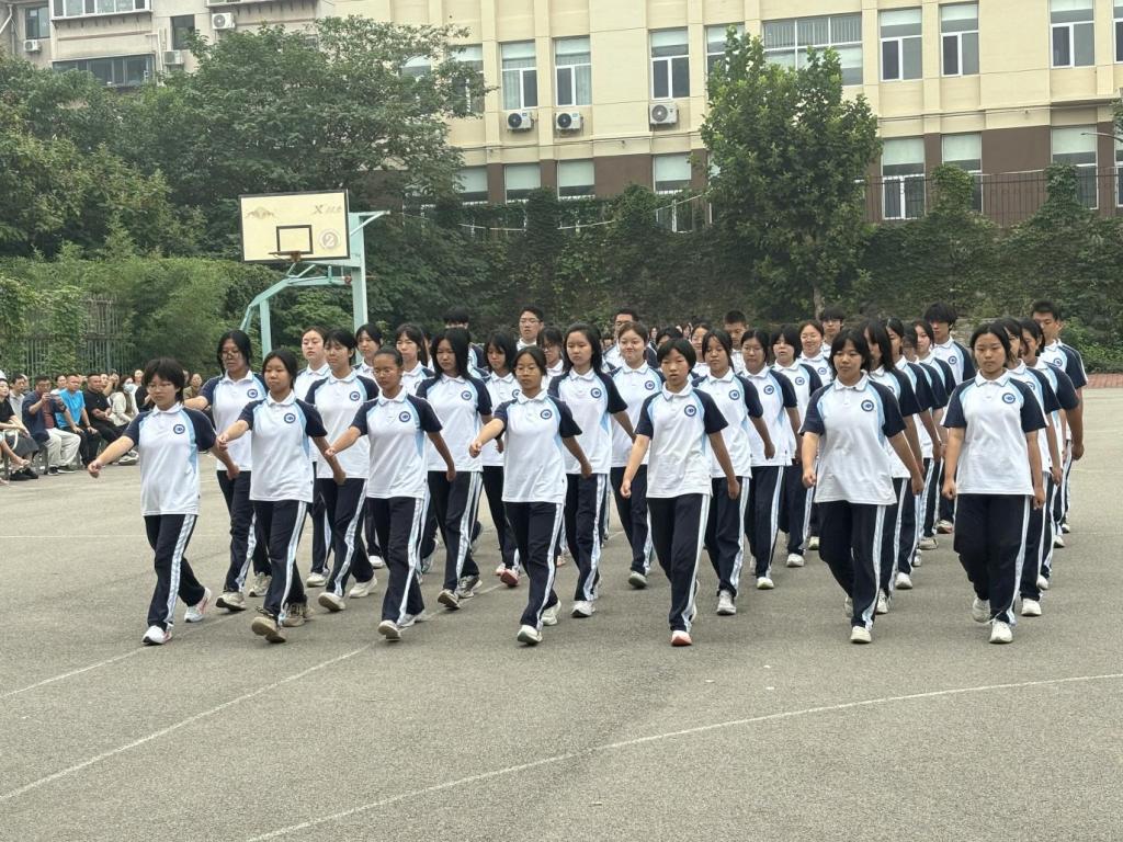 大会在庄严的国歌声中拉开了序幕。高一新生以饱满的热情、昂扬的姿态迎接着检阅,整齐划一的动作、气势磅礴的口号、自信的脸庞和挺拔的身姿,是他们用汗水书写出的完美答卷。