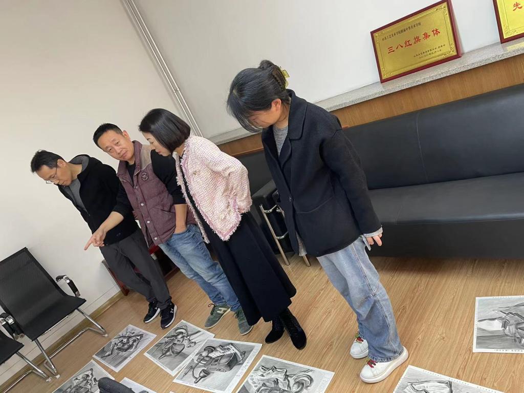 专家们就高三模拟考试试卷进行了分析,指出考试中审题、构图、笔触、比例、层次的重要性,以及要注意细节的刻画和画面整体效果的提升,并对课堂教学方式和教师的专业成长提出意见和建议。