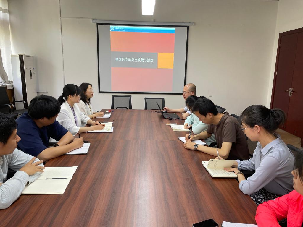 井雷老师以《建国后党的外交政策与活动》为主题进行讲座,从“1949年”提出三大口号、五十年代中国外交、七十年代中国外交、改革开放时期的外交四个方面讲述了中国建国后党的外交政策与活动。附中党员围绕主题对党的外交方针以及如何围绕党的方针政策进行附中自身发展展开积极讨论。