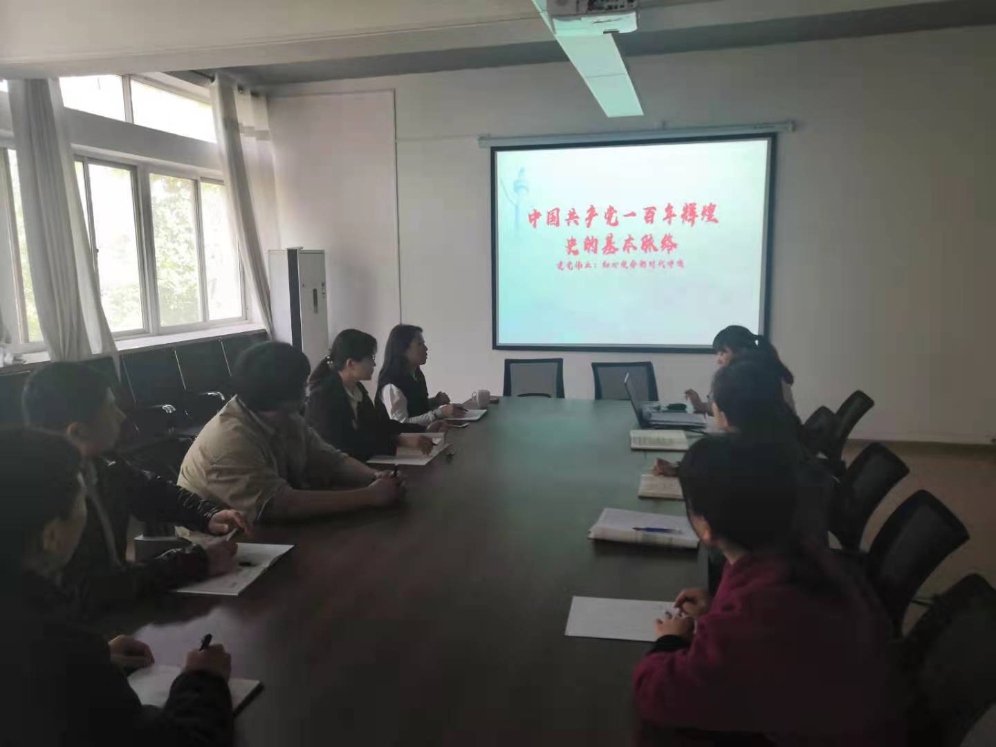 4月27日,附中党支部在附中三楼会议室开展“中国共产党一百年辉煌史的基本脉络”主题党课活动,附中党支部书记耿玉主持会议,附中全体党员参会。