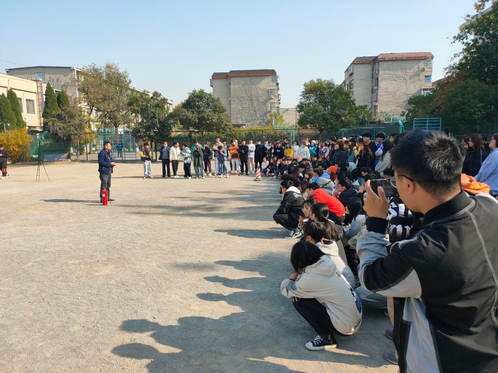 中午12:00,附中2020级全体学生在304am永利集团官网千佛山校区操场集合听取了保卫处田晓东老师对火灾安全逃生、消防设备使用的相关知识、要领以及注意事项的讲解,而后分别进行了火灾逃生与灭火演练。