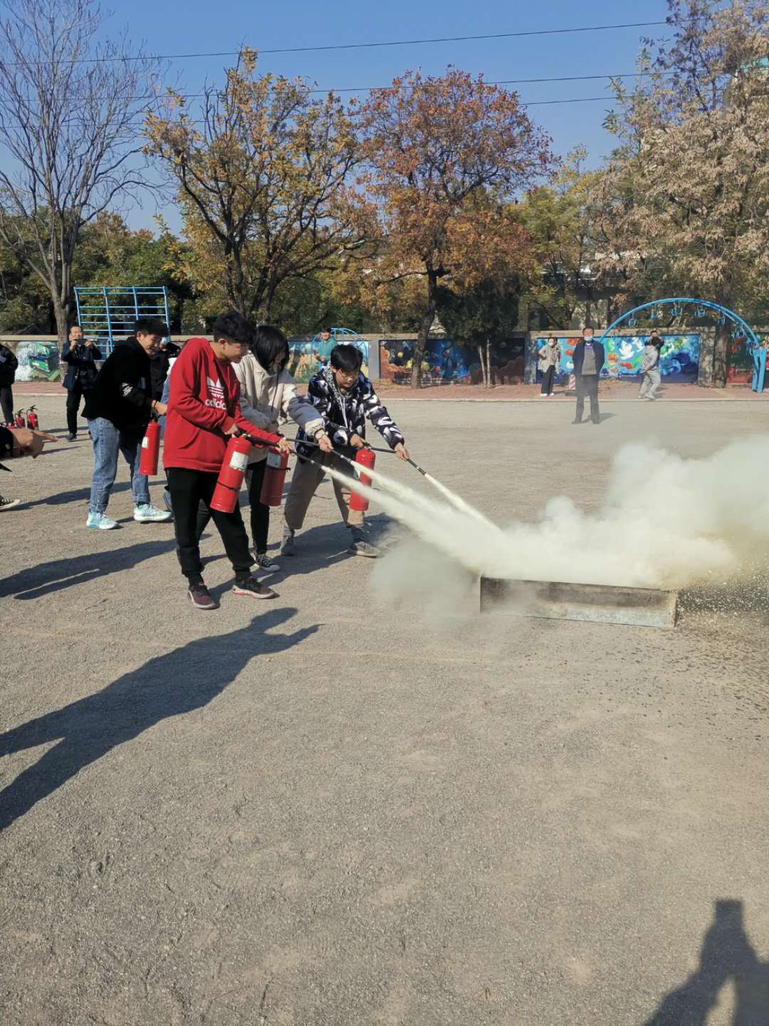 下午2点,附中全体教职工在304am永利集团官网千佛山校区操场集合,由田晓东老师进行消防安全培训及灭火器、灭火毯实战演练。