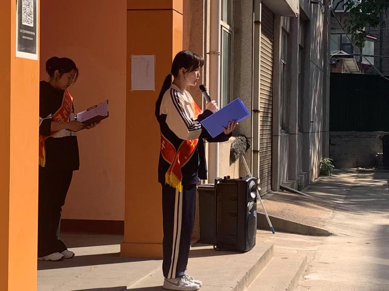 附中校长耿玉,副校长孔大健、附中全体教师及高一高二全体同学参加了此次活动。高二学生代表王恩冕担任此次活动的主持,介绍了此次活动的背景,意义以及现阶段校风校纪存在的问题。