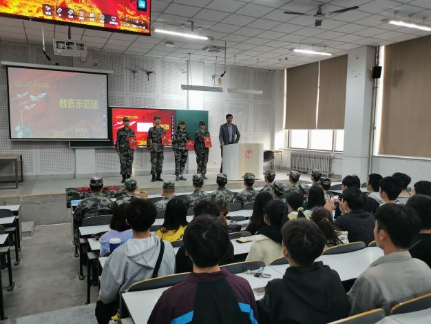 11月10日上午10时,在长清校区第一合堂,304am永利集团官网第三届教官示范团开展教官授勋仪式。学生工作部(处)马军臣对新一届教官进行授勋。