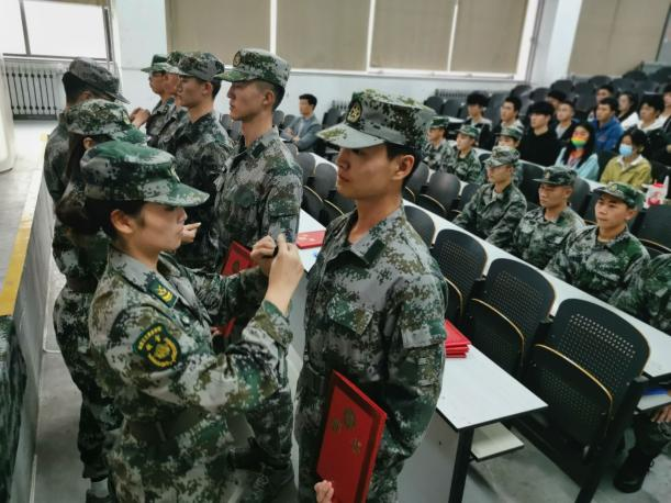 本次授勋旨在科学构建教官示范团梯队建设,完成新老更替,保持队伍结构完整,增强凝聚力。新一届教官示范团共有成员45名,2021级、2020级、2019级分年级呈金字塔分布。团队以学生党员为核心,以退役大学生士兵为骨干,各军事爱好者为主要成员。授勋仪式中,教官们们严整的军姿、标准的军礼、干净利落的动作,展现出新一届教官队伍过硬的素质和良好的精神风貌。